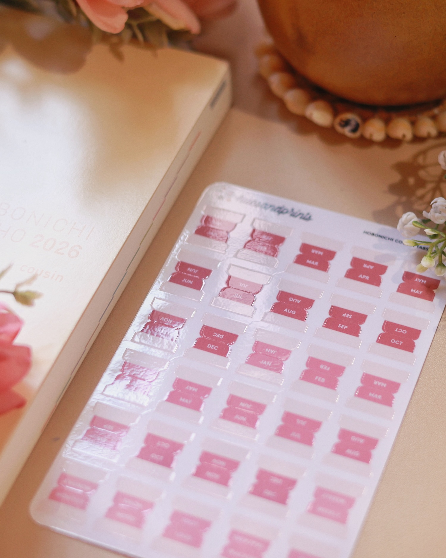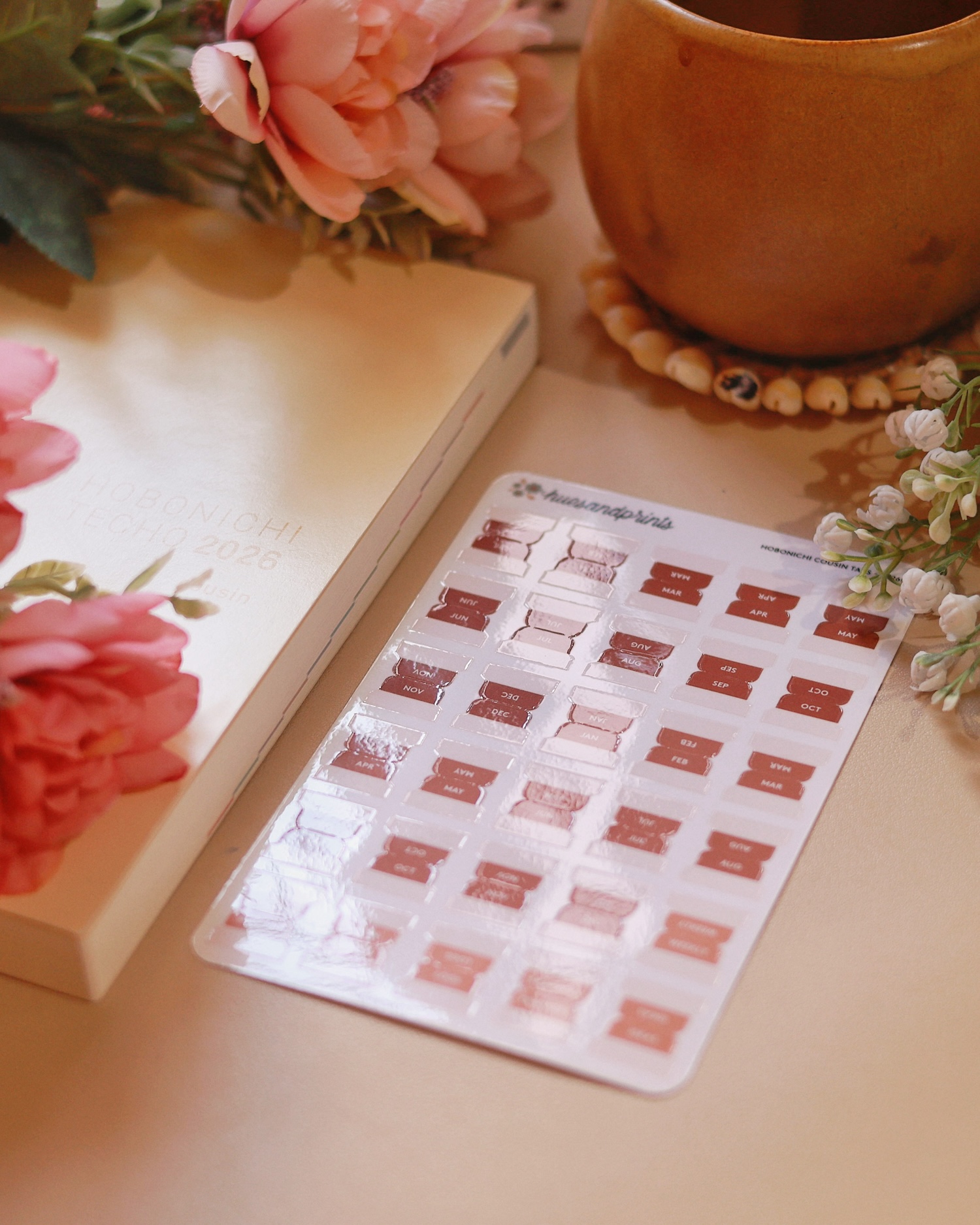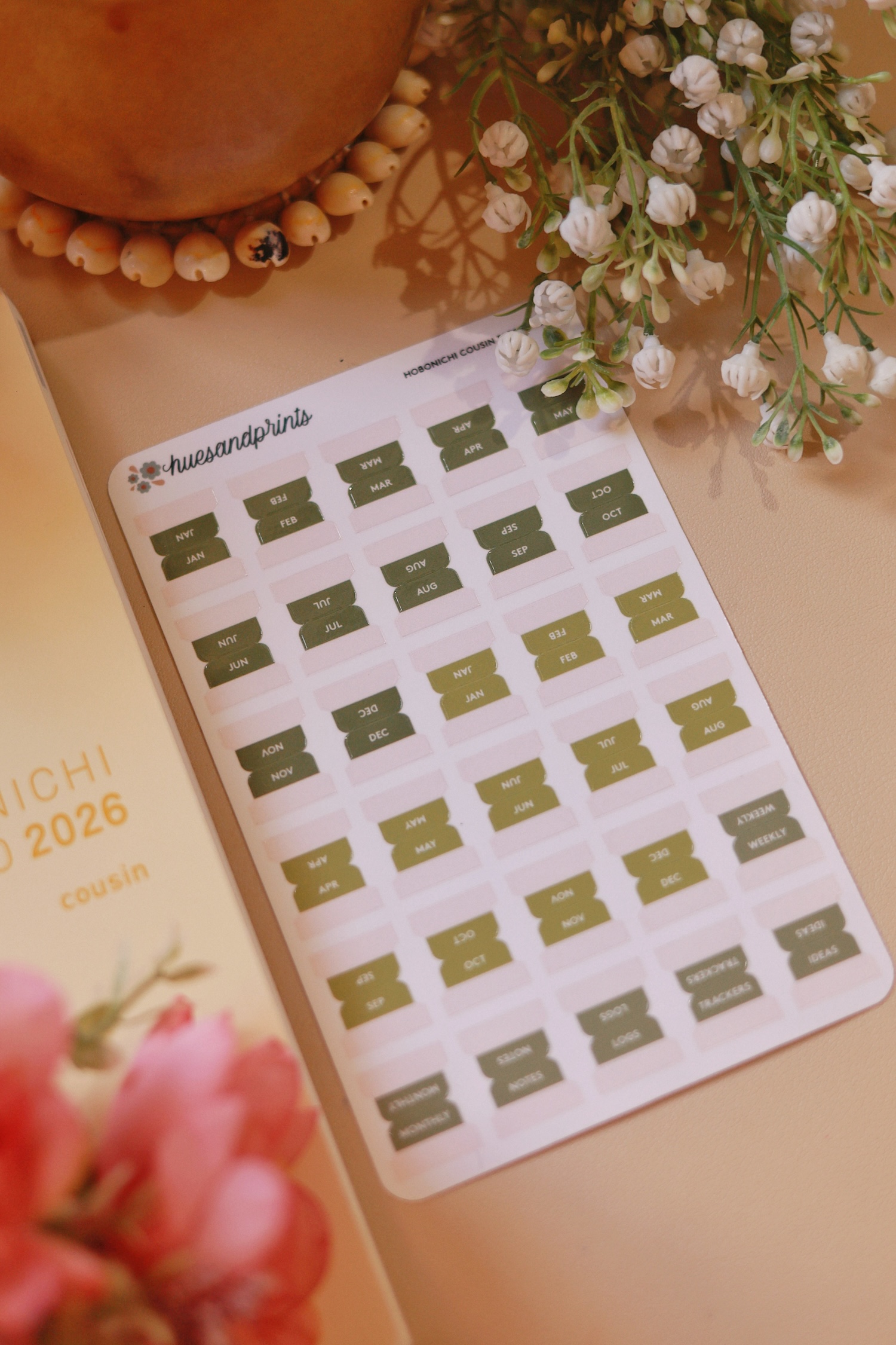 Laminated planner tabs for your Hobonichi Cousin. This product is made to fit your Hobonichi Cousin A5 planner but can also be usable for other planner or journal brands. Tabs include: