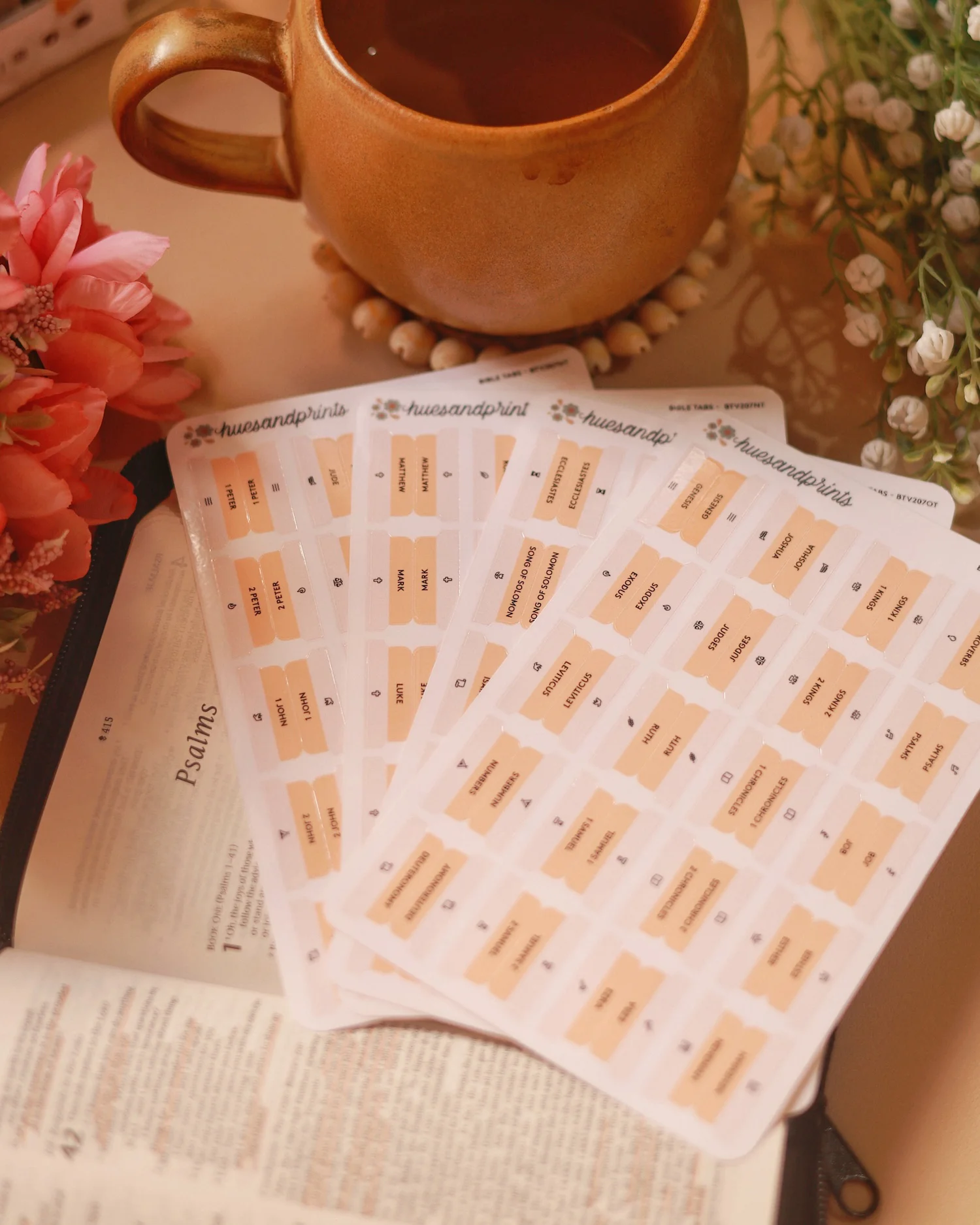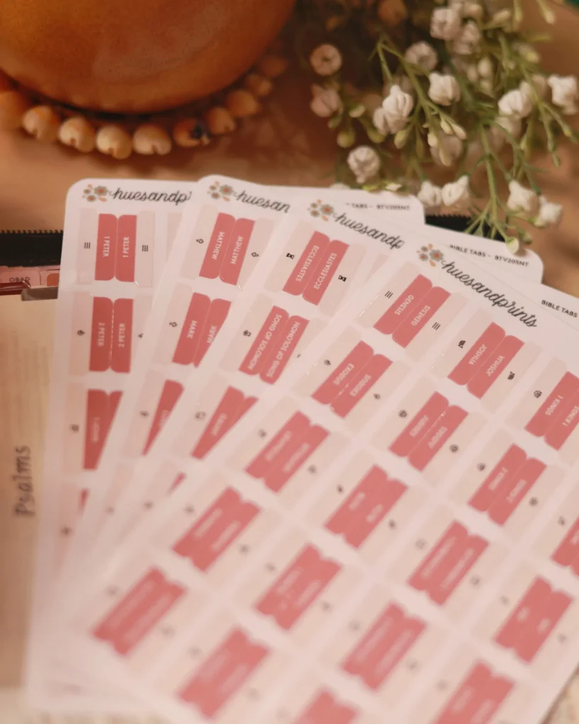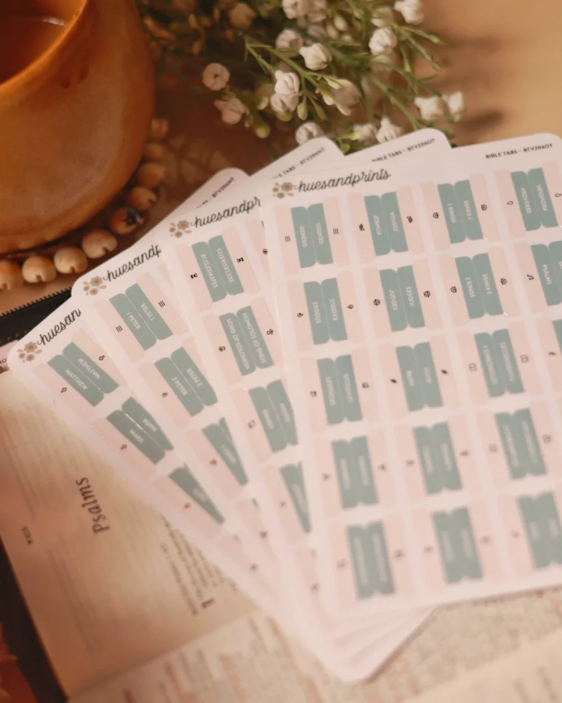 These Bible Tabs are small and are designed to fit smaller Bibles. Can be easily folded and comes in several colors. Like with any index tabs, these are designed to help you quickly flip through the Scriptures and pages or label extra pages of your Bible. Please note, these do not come with Deuterocanonical books. Read product details below. Also, more photos can be found on the Product Gallery tabs.